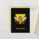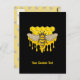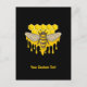 Honey bee with open wings icon over bee hive and honey drops. Custom background colour. Custom text. Seamless pattern background at back side.