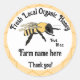 This simple Local Oragnic Honey bee sticker is for beekeepers that sell honey. Super easy to customise, all you have to do is fix the weight and put your farm name. This round sticker is easy to apply to glass jars and plastic honey containers. Can be applied on both the top and side of the jar/container (depending on jar/container size). Perfect for getting your bussiness name out there and telling your customers what they need to know.