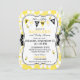 Honeycomb print with black and white polka-dot print accent and honey bees modern baby shower invitation card design. Colours are yellow, black, and white.