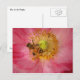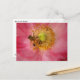 This postcard features a honeybee busy pollinating the yellow stamens of a lovely pink annual Shirley poppy. The gold and black bee inside the delicate pink petals creates an impressionistic, painterly feel.