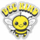 Cute illustration with "Bee Kind" text design and cute, funny Kawaii style yellow and black bee decoration