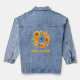 Bee Kind Women's Denim Jacket with floral wreath and bee.