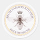An elegant honey label featuring a beautiful ghosted double bee graphic logo in earthy brown and yellow gold, made with love your from your kitchen; with your name added. An elegant kitchen food label for your honey apiary goods that you sell or for personal homemade honey gifts to others.