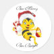 Bee Merry Christmas Cartoon Classic Round Sticker