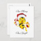 Adorable Christmas bee cartoon with a Christmas red nose, Christmas hat, holding a peppermint candy cane and a red honey basket.