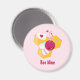A magnet with an adorable drawing of a pink and white striped bumble bee. A piece of yellow honeycomb behind. A letter sealed with a heart and a group of floating hearts are also part of the design. Editable text says: Bee Mine.