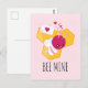 Bee Mine Cute Bee with Pink Valentine Hearts Postcard