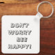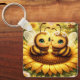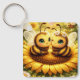 A cute smoochy bee couple suggled on a sunflower. Back says Don't Worry BEE Happy!