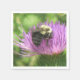 This napkin features a bumble bee gathering nectar from a purple thistle flower in a meadow in Connecticut. Most napkins have paper plates to match.