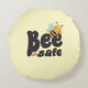 Be safe Cute sleiping bee design on a round pillow. The back has a happy bee pattern with bees, honey and flowers.