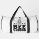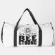 This crisp white and black duffle bag features a striking black and white illustration of a bee, with the bold, encouraging text "BEE STRONG" below it. It’s a powerful and motivational design, perfect for anyone who needs a reminder of their inner strength. Ideal for gym, travel, or everyday carry. Edit colour of the bag caps and body in the Design tool to your favored colours.