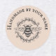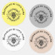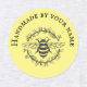 Iron on labels with hand drawn centre bee wreath with customisable "Handmade by" top curved text on 4 different colour backgrounds
