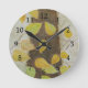 A colour pencil drawing of the greenish gold beech leaves in the autumn adorns this clock!