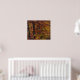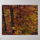 This poster features a lovely impressionistic design of a beech tree forest in brilliant autumn colours of red, brown, yellow and gold. A few dark brown trunks are peeking through the leaves.