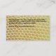 Bumble bees flying around a vintage skep beehive featured on professional business cards with a honeycomb background to match our honey jar labels with the same design. Rustic, round text to add the name of your beekeeping business and type of honey, beeswax or other products from the apiary. Enter the beekeeper name, title and contact information, with additional product information or business hours on the back (optional). © dotpattern