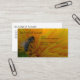 A business card featuring a photograph of a honeybee visiting an ornamental sunflower. Your business name is written along the top of the card over the bright yellow of the flower petals. Your title, name and business slogan can also be written on the front of the business card. Additional details are written on the back. This can be customized, but there is room for phone numbers, email, mailing address, and website. An appropriate card for a beekeeper, apiary, gardener, or a business selling honey, pollen, pollination services or flowers.