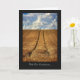 A fine art condolence card featuring a breathtaking view over a wheat field to the horizon and beyond. A trail of tractor-flattened wheat leads from beyond the horizon to the front of the scene, curves around and heads straight back over the horizon. A dramatic sky casts it's shadows across the field and suggests brighter times on the other side of the horizon.