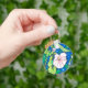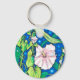 Keychain featuring colorful floral art, beautiful bindweed flowers wrapping around reed stems. Original artwork - acrylic markers and ink pen sketch on paper. Color palette: azure blue, chartreuse green, pink, white.