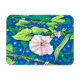 Flexible magnet featuring colorful floral sketch, beautiful bindweed flowers wrapping around reed stems. Original artwork - acrylic markers and ink pen sketch on paper. Color palette: azure blue, chartreuse green, pink, white.