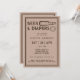 Beer and Diapers Men's Baby Shower Diaper Party Invitation. Celebrate the impending arrival of a new baby with this fun and unique 'Beer & Diapers' diaper party Invitation. The rustic sketch design features a classic beer bottle and a baby diaper, perfect for a dad-to-be's celebration. The warm, earthy tones and modern wood-grain background evoke a relaxed and casual vibe. This invitation is ideal for a modern, men's baby shower for the father. Make it your own by adding the dad's name, date, time, and location details. Ensure all the guys know what to expect registry or diaper gifting information is explained.
