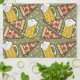Beer and Pizza Graphic Pattern Vertical Tea Towel
