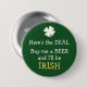 Here's a fun button for St. Patrick's Day! It features a white shamrock at the very top, with the text below in white and gold "Here's the DEAL. Buy me a BEER and I'll be IRISH." The image and text are placed on a green background, of course!