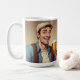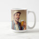 This mug features a happy man drinking beer. Text can be added.