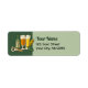 Beer illustration. Bottle, glass, opener, hops and barley. Custom background color. Custom text for name and address.