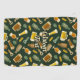 Beer bottle, glass, opener, hops and barley. Seamless pattern. Custom background colour. Custom text.