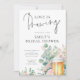 Beer and Eucalyptus Love is Brewing Bridal Shower Available digitally and printed. The word Brewing is in a modern non-editable script. The rest of the text you can easily personalise. With a watercolor beer and euclyptus leaves illustration.