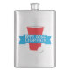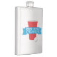 The product is a good size and came exactly as it was pictured. The lid is not attached to the flask, which could be dangerous on drunken nights... The print came out surprisingly well and looks very sharp. Would definitely recommend.