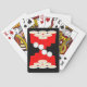 Racks of red beer pong cups filled with beer and two ping pong balls against a black background decorate the backs of this Bicycle Playing Card Deck. The images were flipped and mirrored so that even when the cards are mixed up they are always facing the right way.