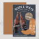 A watercolor beer bottle illustration design with hand drawn cowboy boots. A retro look beer themed design perfect for adult birthday parties. An ideal illustration for anyone who loves beer, brewery themes, BBQ's, summer parties and beer alcohol drinks.