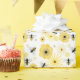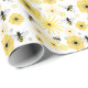 Wrapping paper featuring a pattern of bees and flowers with a yellow and black colour scheme.