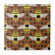 This cute pattern features a graphic motif of busy bees in black and yellow set against a stylised honeycomb design in warm orange and brown hues.