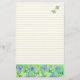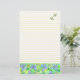 A pretty yellow lined stationery paper decorated with a border of periwinkle blue flowers and bees painted with watercolor. Great for letters, lists, journalling and more. Also, a nice gift for a beekeeper!