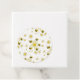 This charming favour tag design features a delightful scattering of stylized daisies in soft white with sunny yellow centres. Playful bumblebees, rendered in cheerful yellow and black stripes with delicate white wings, buzz around the blossoms. Tiny yellow dots are sprinkled across the gentle grey background, adding a touch of whimsical sweetness to the overall design. Perfect for adding a touch of springtime joy to any gift or packaging.