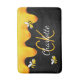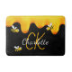 A stylish black background and happy smiling bumble bees. Decorated with sweet, golden honey dripping. Personalise and add your name and monogram initials, golden and white letters. The name is written with a hand lettered style script.
