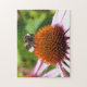 A photographic design of a beautiful white-tailed bumblebee gathering pollen on a rudbeckia flower.