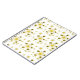 This charming notebook features a delightful scattering of stylized daisies in soft white with sunny yellow centres. Playful bumblebees, rendered in cheerful yellow and black stripes with delicate white wings, buzz around the blossoms. Tiny yellow dots are sprinkled across the gentle grey background, adding a touch of whimsical sweetness to the overall design.