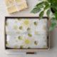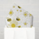 This charming tissue paper design features a delightful scattering of stylized daisies in soft white with sunny yellow centres. Playful bumblebees, rendered in cheerful yellow and black stripes with delicate white wings, buzz around the blossoms. Tiny yellow dots are sprinkled across the gentle grey background, adding a touch of whimsical sweetness to the overall design. Perfect for adding a touch of springtime joy to any gift or packaging.