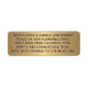 Basic warning label for using handmade beeswax candles from the apiary for sale at the farmers' market, over a faux-gold foil background. Never leave unattended, keep away from children, pets, draught , combustibles and trim the wick.