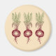 A vintage vegetable illustration of a beet is coloured in reds and greens.