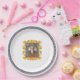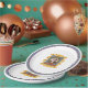 Celebrate Beethoven! From an original artwork series by ZoeSPEAK of classical music collectors plates, these Paper Plates feature a portrait of the composer Ludwig van Beethoven. The portrait is a hand tinted etching, surrounded by an illustration of an ornate oval golden frame. The frame is on a wallpaper background of yellow suns and uplifting winged spirits against a medium blue. Under the portrait, in red, is the composer's name. The wallpaper is surrounded by more gold ribbons, in the centre of the plate against a white background. There is a medium blue band with winged spirits and a red border around the edge of the plate.