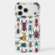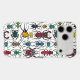 Various hand-drawn beetles, seamless pattern.