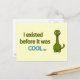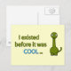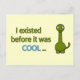 A funny green dinosaur, with a friendly look and a funny message: I existed before it was cool. This is a joke referring to the fact that dinosaurs lived before the Ice Age and also a great way to show to someone how cool and wise you are.