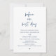 Beautiful Modern Beautiful Minimalist, Navy Blue Script font, Wedding Rehearsal Dinner Invitation card (Before our best day). This is perfect for your wedding eve rehearsal, dinner and party celebration. Add your details in matching font / lettering.