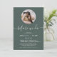 Before we do! Let's celebrate our favourite couple's rehearsal night before the big day with this classic and elegant calligraphy Before we do Rehearsal Dinner Script in white and boho sage green eucalyptus .Add you couple's photo in a circle mask.