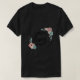 I give wanted to give this a 4 instead of a 5 because these Basic DARK T0shirts run unexpectedly SLIM or Narrow. Which is great if you do not have a potbelly, but I have a paunch. It isn't the shirt's fault that I've got a beer belly. The design and shirt itself is a quality cotton shirt. The color is more of a deep purple, but still a very pretty color. The Basic DARK T-shirts run a bit SLIMMER than the Basic Ts. The neck is a fraction narrower (or seems to be narrower) also. I'm a paunchy middle-aged woman and my neck is 12 inches (31cm) thick and the neckline fell about the same as in the photo of the man, and I had the desire to tug it a bit. So if you're a thick necked man or like loose shirts, be aware these are slimmer shirts. Once I get rid of my lockdown paunch it'll look great. The shirt washed well in cold water with no apparent bleeding. We don't have a dryer, so it hung dry. Did not shrink. Love the colors and the design. The design looks smaller on my shirt than it does on the model on-line. But still, it looks good on the shirt. The printing looks as it does on the model, just the size seems fractionally smaller. Washed garment in cold water, hung dry and design appeared unaffected.