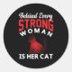 Behind Every Strong woman is Her Cat Classic Round Sticker
